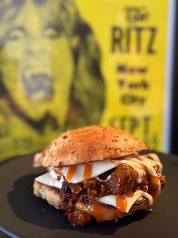 Ground beef and bacon sloppy joe with American cheese, Kewpie inspired mayo, and the famous James River BBQ sauce on an Iggy’s brioche bun