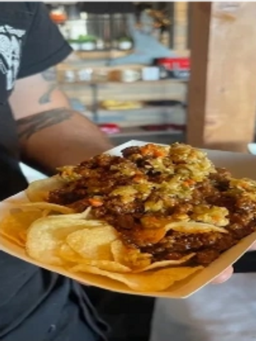 Ground beef and bacon Sloppy Joe, colatura, feta pepper jack pimento spread over a bag of Zapp’s Kettle Chips. Make a Three-Way for just a dollar more! (Better picture incoming)